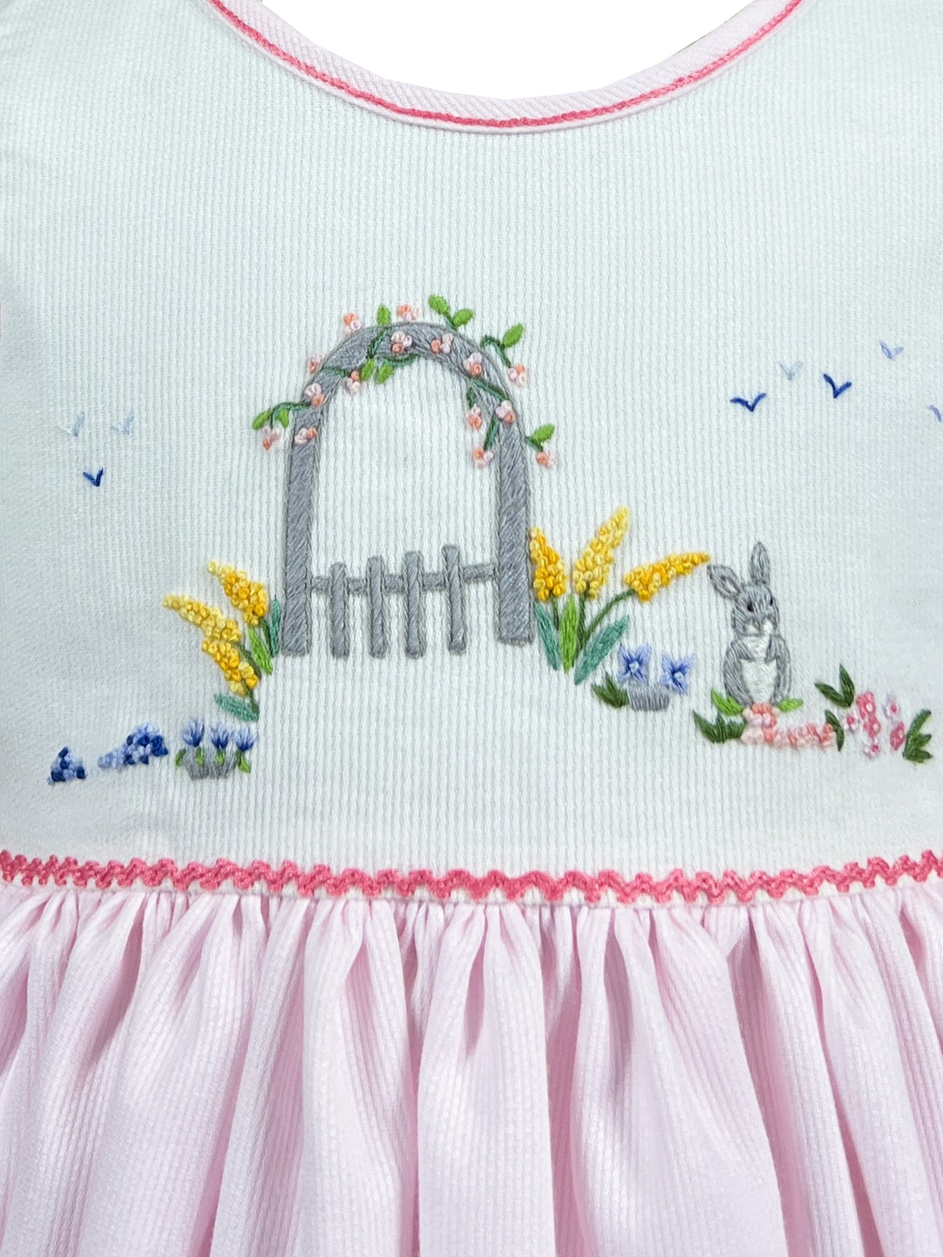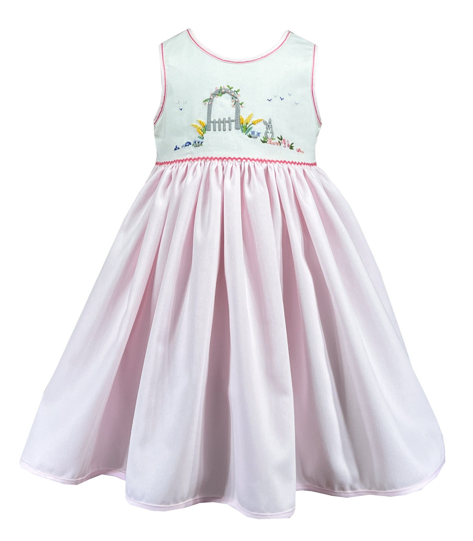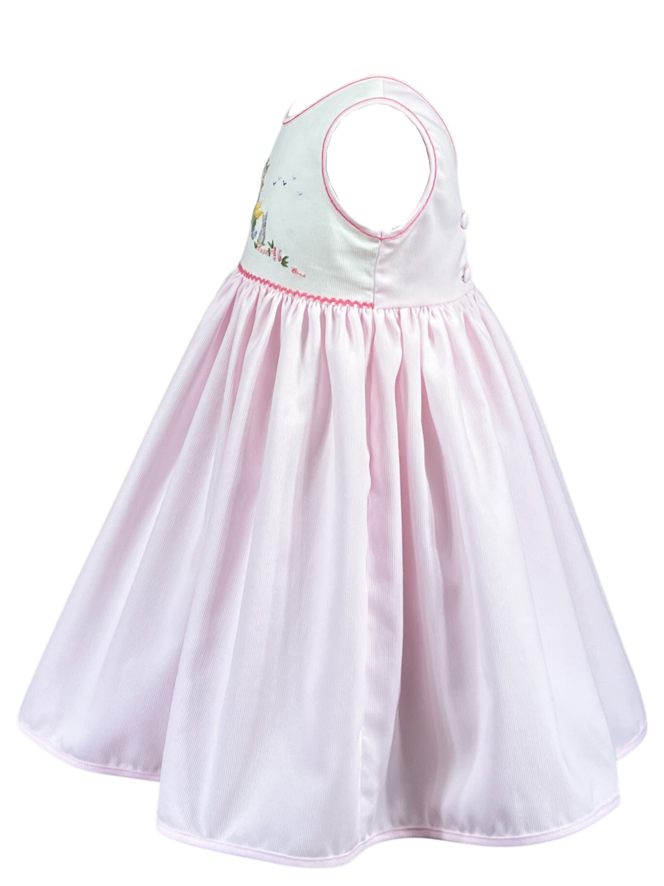 The soft pastel pink Bunny's Garden summer dress carries an enchanting story of its own.
