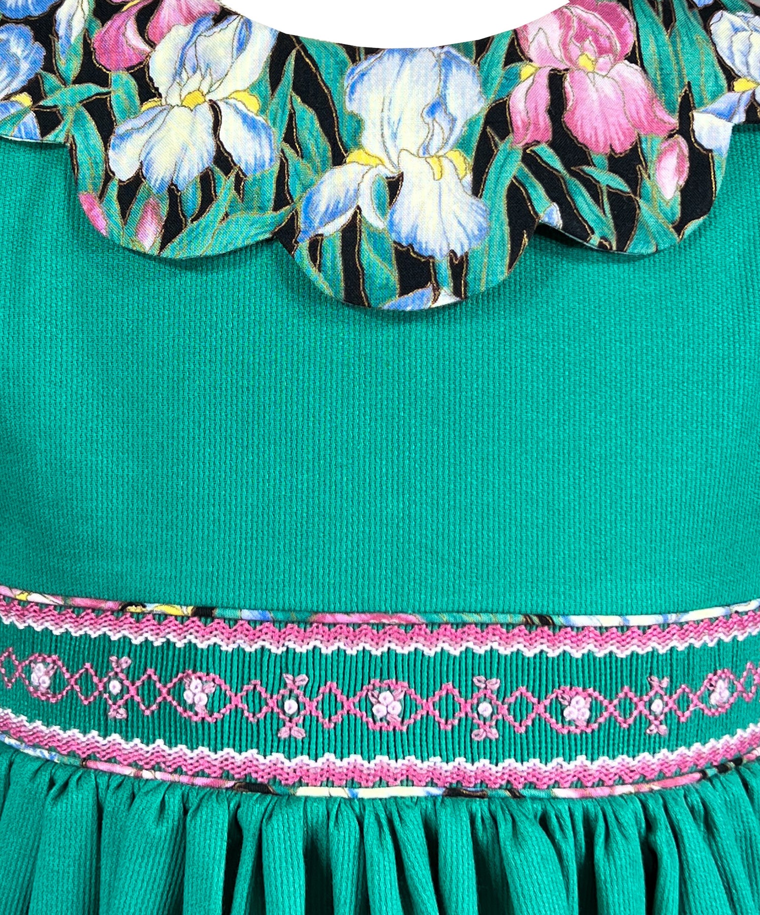 Persian Green Irises Petal Collar Smocked Dress