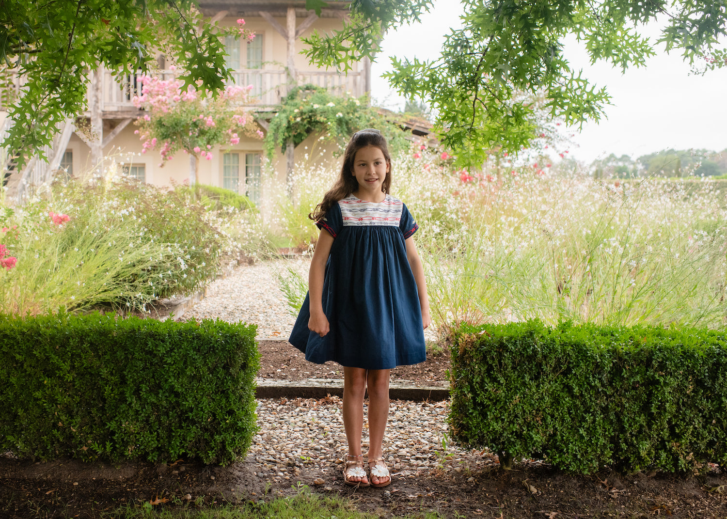 The relaxed silhouette with high empire waist offers effortless elegance making it the ideal for little adventurers ready to explore both playground seas and garden harbors. The A-line cut ensures comfortable movement while maintaining timeless sophistication.