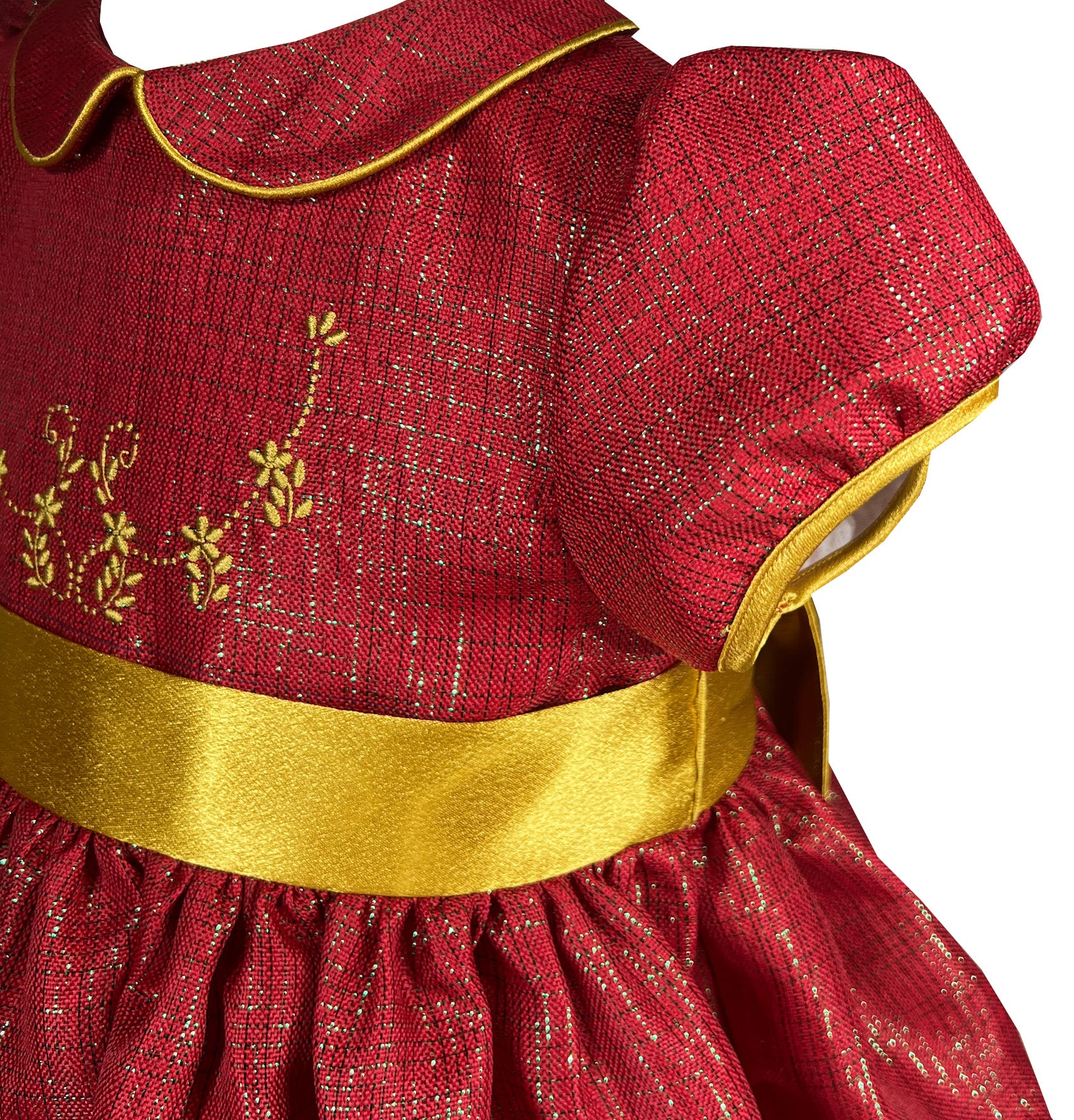 Il y a quelque chose de magique à entrer dans une vieille bibliothèque de château, où des siècles de connaissances sont reliés en cuir cramoisi avec des lettres dorées. Nous voulions capturer ce sentiment de révérence et de grandeur, cette sensation d'être entouré de trésors soigneusement préservés à travers les générations. Cette robe est pour l'enfant qui comprend que certains moments méritent d'être rappelés comme des chapitres dans un beau livre.