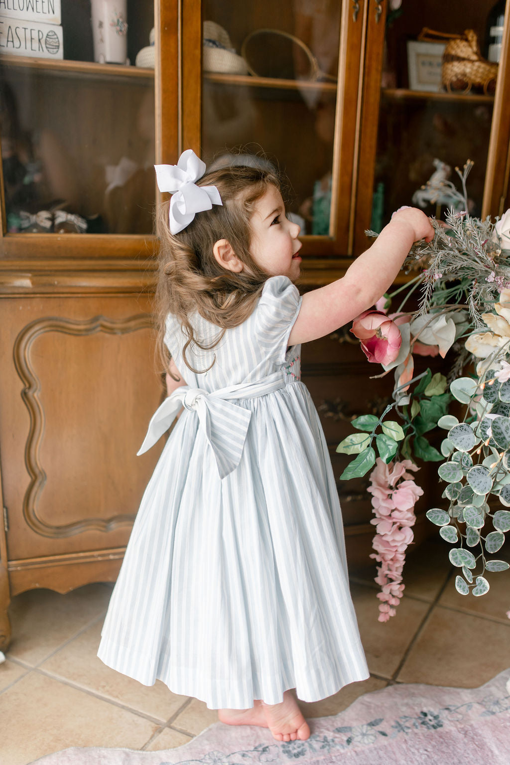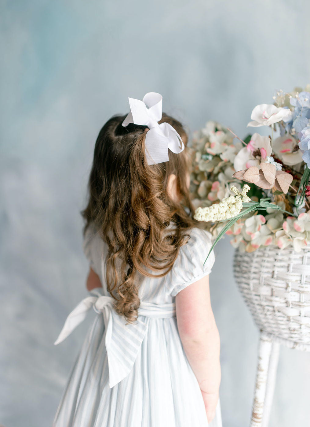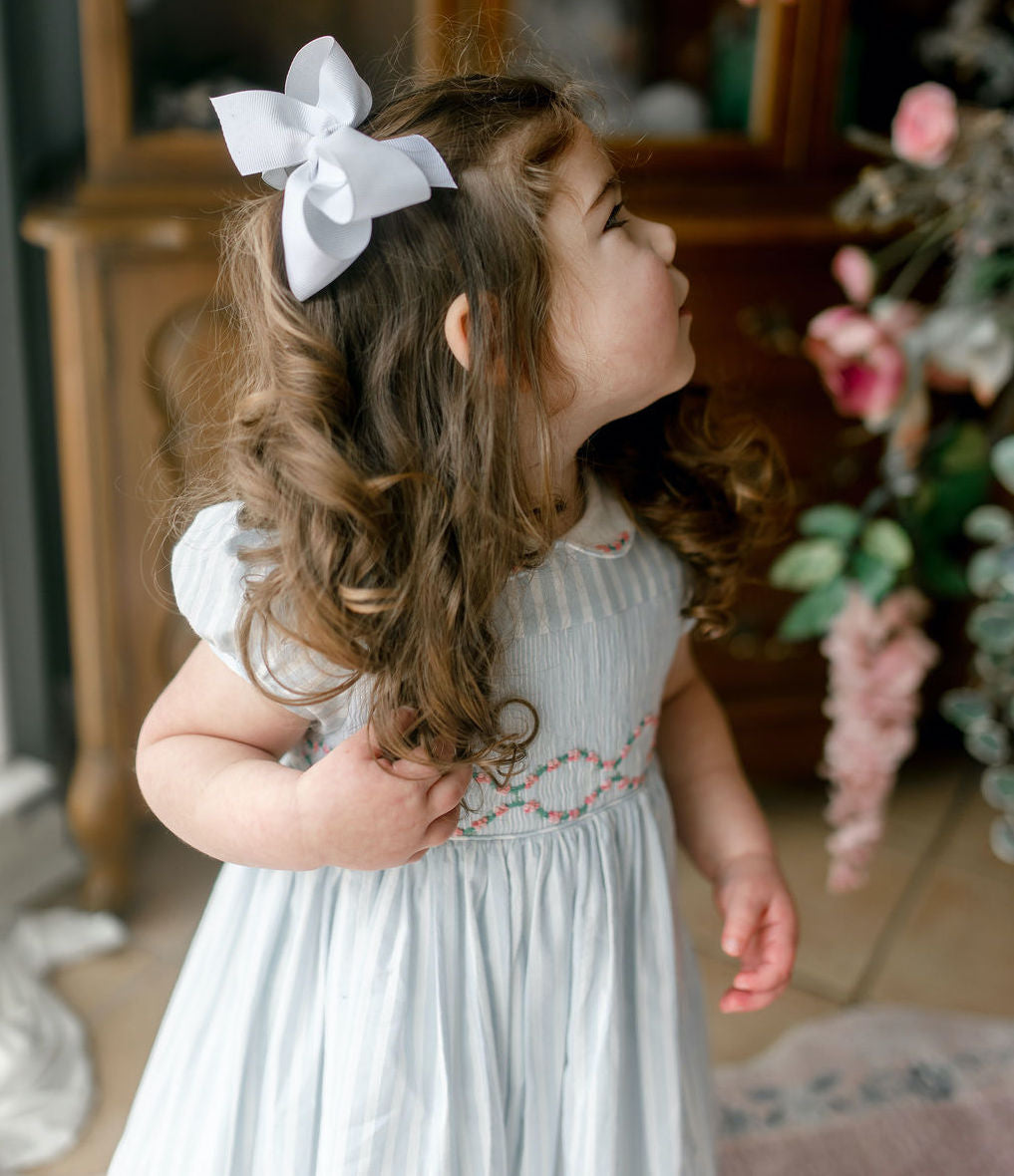 easter collection, blue striped dress, white bow for girls