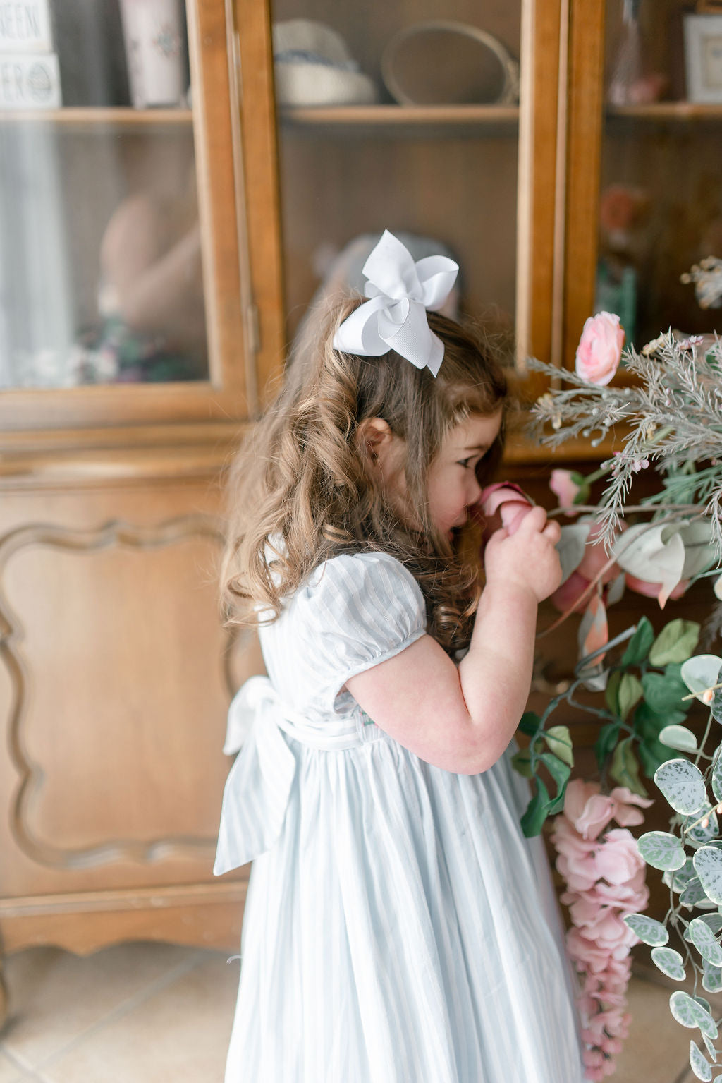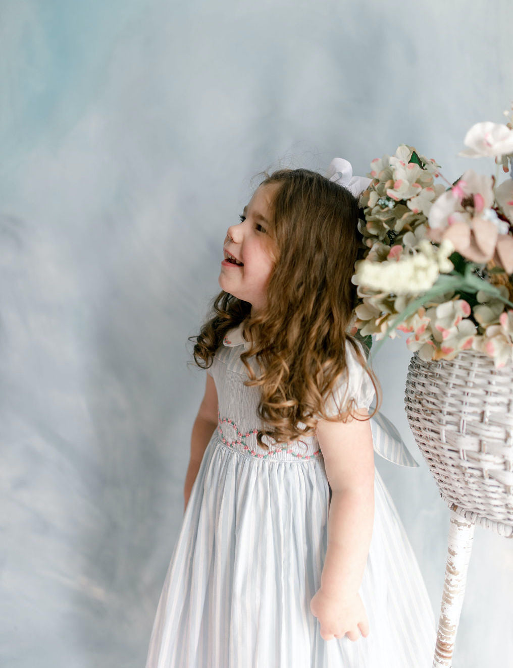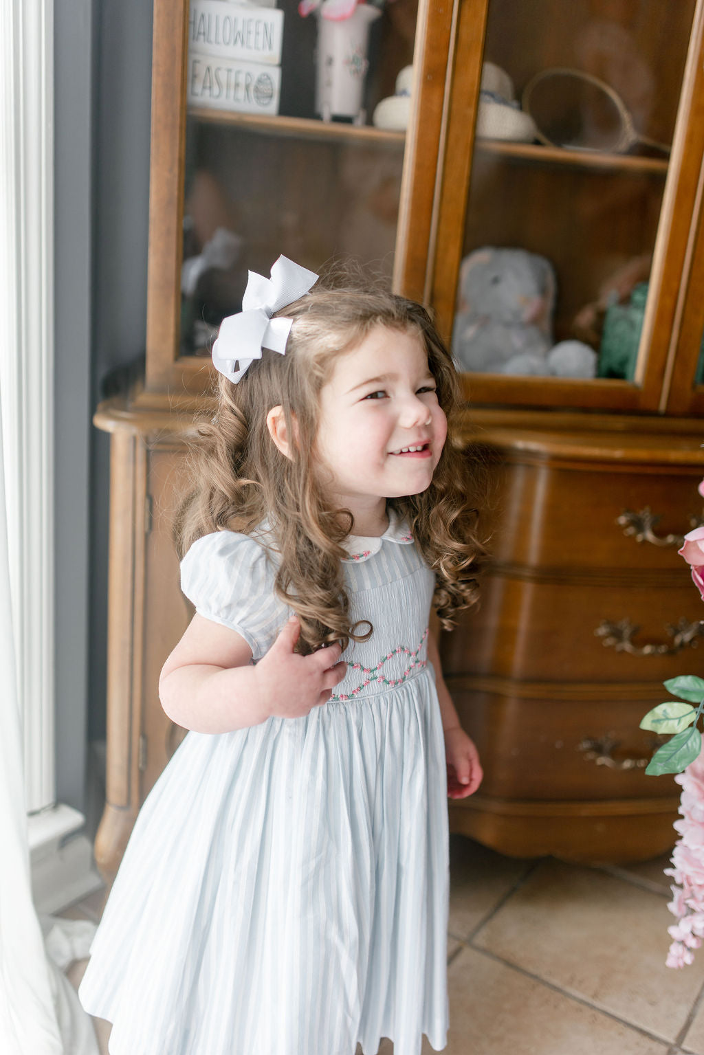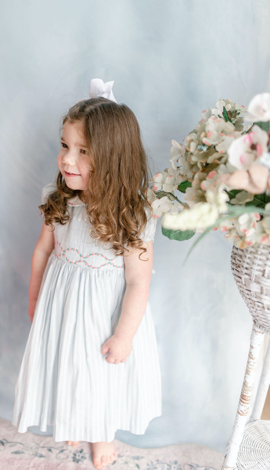 easter collection, blue striped dress, white bow for girls