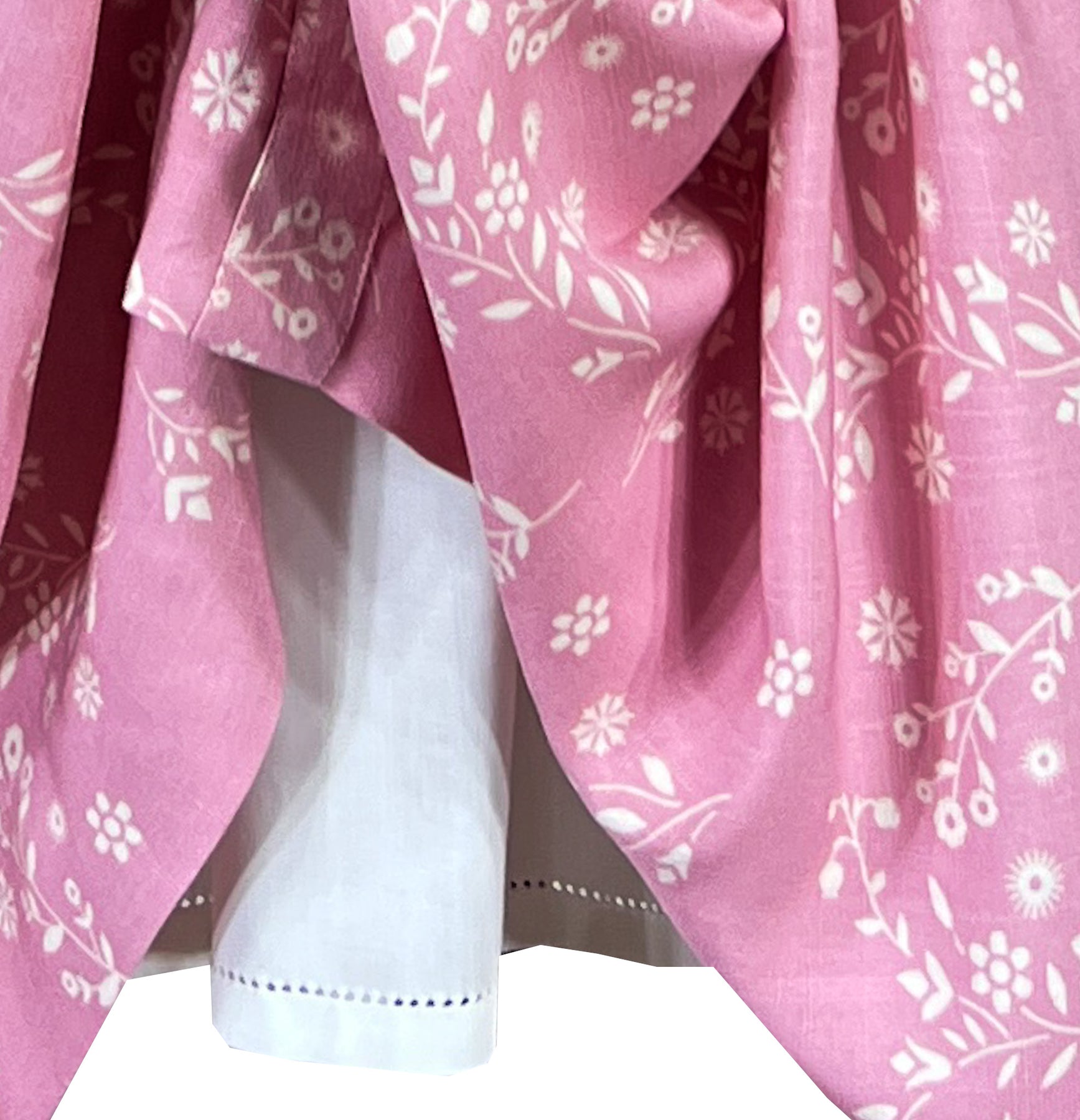 Véritable trésor d'une autre époque, la robe Rose Antique incarne l'élégance intemporelle dans la plus belle nuance de rose aux accents mauves. De délicates vignes fleuries blanches parsèment le tissu, créant un motif romantique d'inspiration vintage.