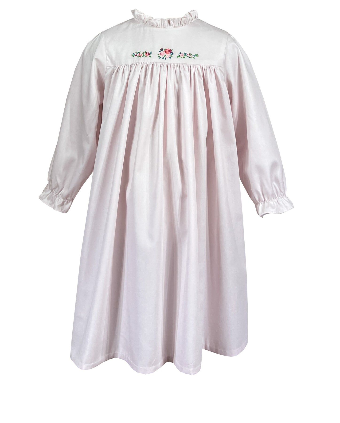 smocked christmas nightgown, pastel pink nightwear, petit plume